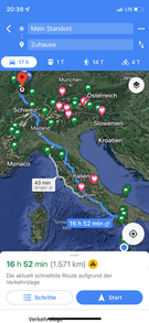 Dann scheint es noch eine Vorschrift in der italienischen Straßenverkehrsordnung zu geben, dass Linkskurven immer und unbedingt auf dem geradesten Weg zu durchfahren sind. Das führt regelmäßig zu unterhaltsamen und spannenden Situationen, die ich auf dem Motorrad ohne Airbag und Knautschzone natürlich weniger lustig finde. Je näher ich den Bergen des Nordens komme, umso "normaler" und mitteleuropäischer zeigt sich allerdings der Verkehr.